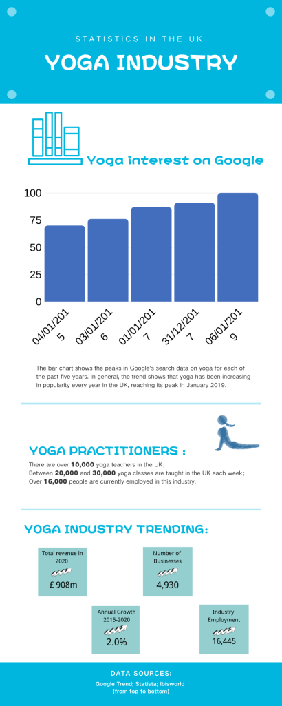 A infographic of yoga industry in the UK (Made by Glorie)